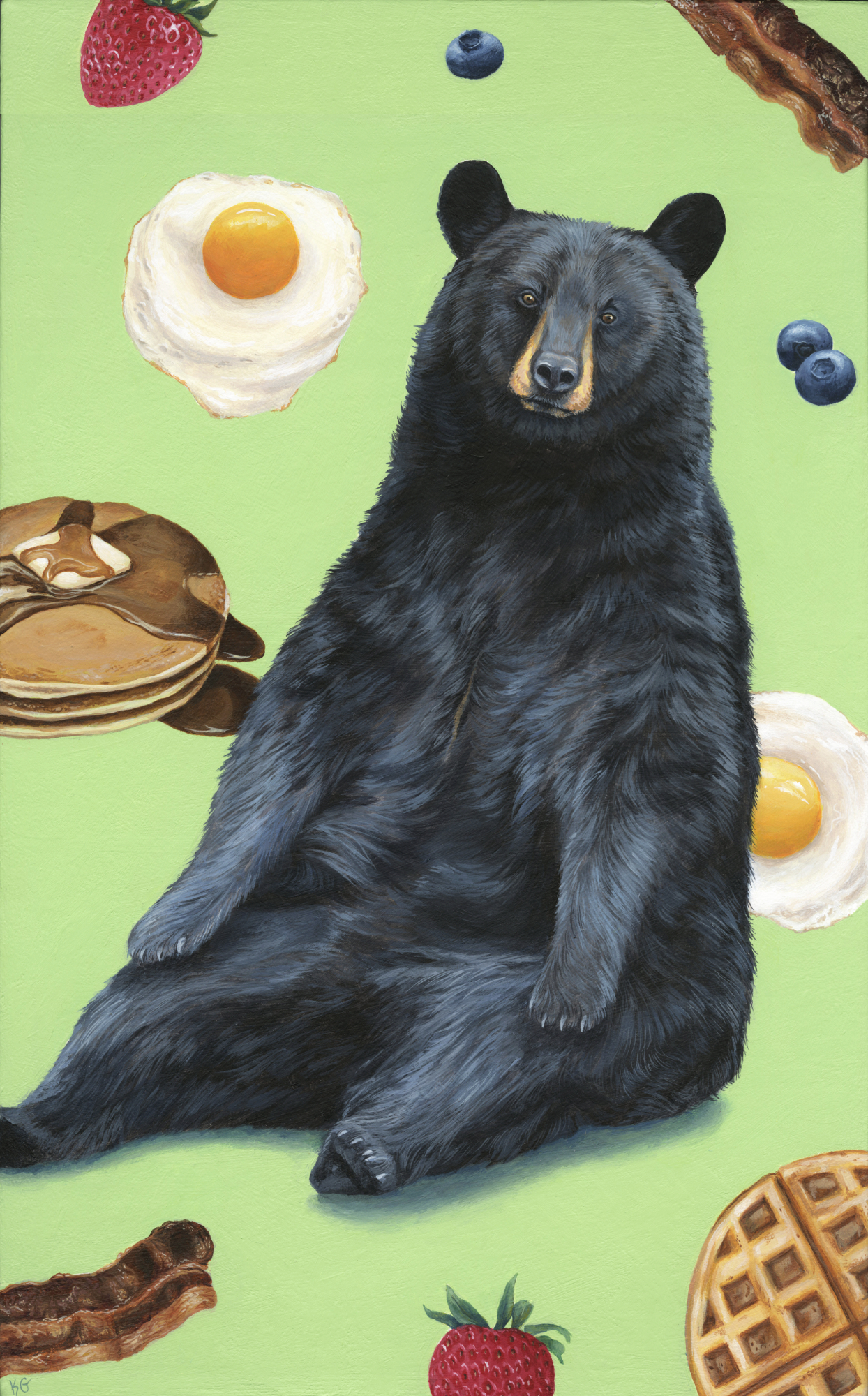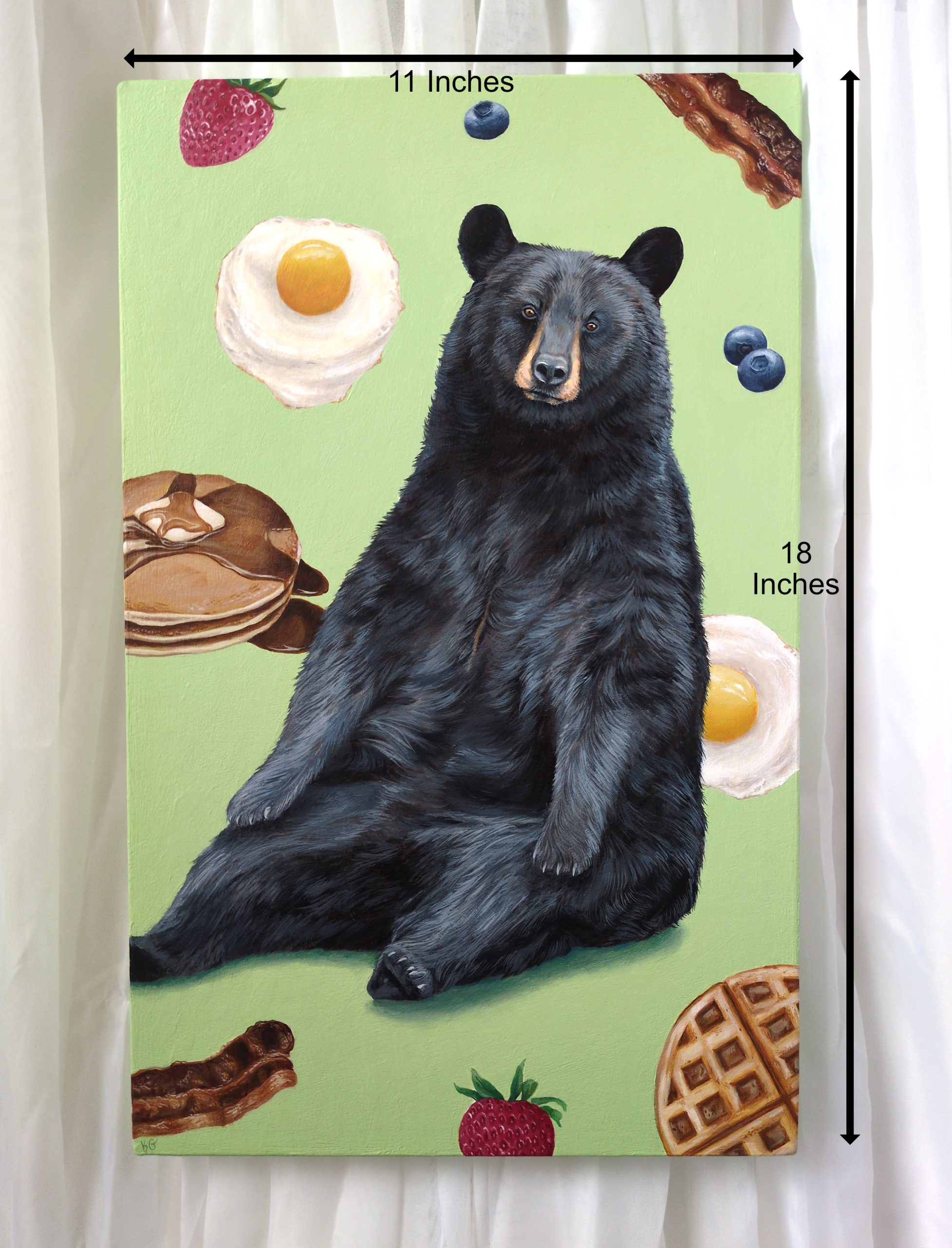 Breakfast Bear- 11×18 Acrylic Painting on Wood Panel